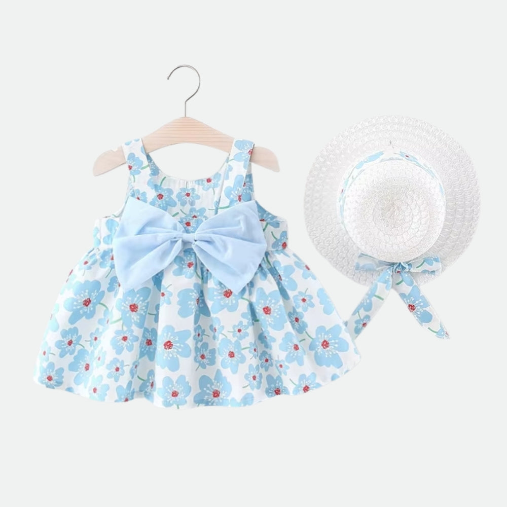 - Delar: 1 × ärmlös klänning, 1 × solhatt