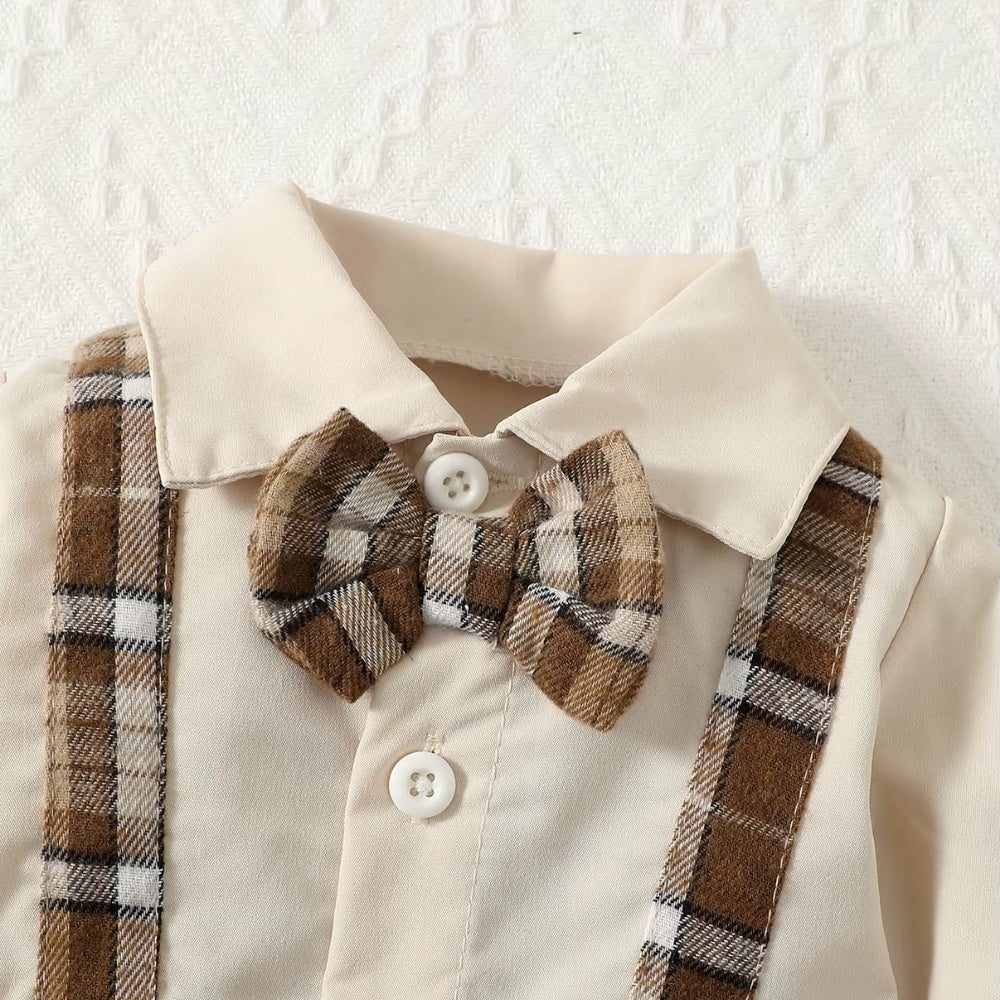 - Set: 1 × romper med fluga + 1 × rutig keps